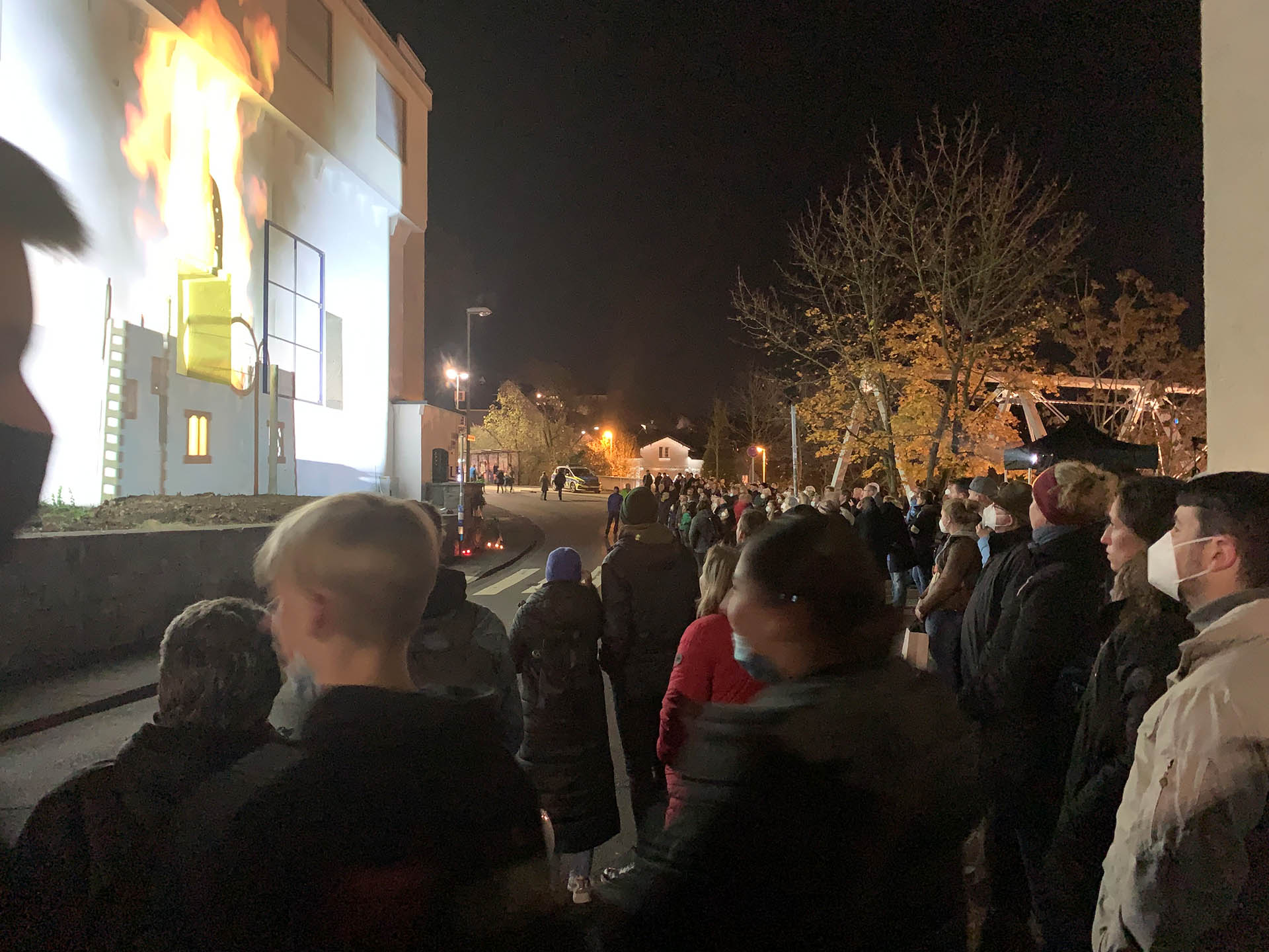 Einige Schülerinnen und Schüler der Klasse 10 unserer Schule besuchten zusammen mit ihren Lehrern Frau Schröers und Herrn Schmidt-Faber die Gedenkveranstaltung am 9. November am Platz der alten Synagoge in Siegen. Hier wurde am 9. bzw. 10. November 1938 die jüdische Synagoge von den Siegener Nazis angesteckt. Später rissen die Nazis die Ruine ab und bauten an der Stelle einen Luftschutzbunker. Heute ist dieser Bunker der Ausstellungsraum für das Aktive Museum Südwestfalen.