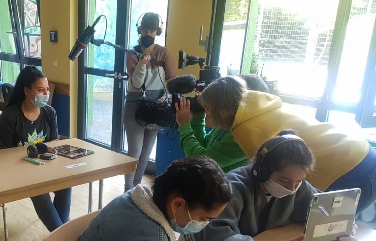 Diesmal war das WDR-Team am 2.9.2020 mit einer Neuauflage, dem 3. Teil der WDR-History-App der Zeitzeugen-App zu Besuch, und zwar in der Jahrgangstufe 9. Die Schüler der Jahrgangsstufe 9 sind etwa so alt wie die Zeitzeugen in der Kriegszeit damals. Große Betroffenheit bei den Schülern, wenn Willi davon erzählt, wie er mit 18 Jahren 1943 gegen seinen Willen in die Wehrmacht eingezogen wurde und sein 16-jähriger Kamerad verwundet und sterbend neben ihm liegt. Oder Jürgen, der mit 18 Jahren an die Front kam und seine Geschichte erzählt. Viele Schüler dieser Jahrgangsstufe haben selbst schon Krieg erlebt und werden nach ihren eigenen Erlebnissen gefragt. Aber das Reden über diese Erfahrungen fällt ihnen vor der Kamera sehr schwer. Ihre Klassenkameraden ergreifen für sie das Wort. So erklärt Jonas: „Es ist sehr erschreckend, dass man gezwungen wurde zu einer Sache, die man gar nicht wollte. Das ist heute gar nicht mehr zu denken, dass man das gemacht hat.“ Oder Chaymae erzählt von ihren Klassenkameradinnen, die Krieg erlebt haben und wie traurig sie das macht.